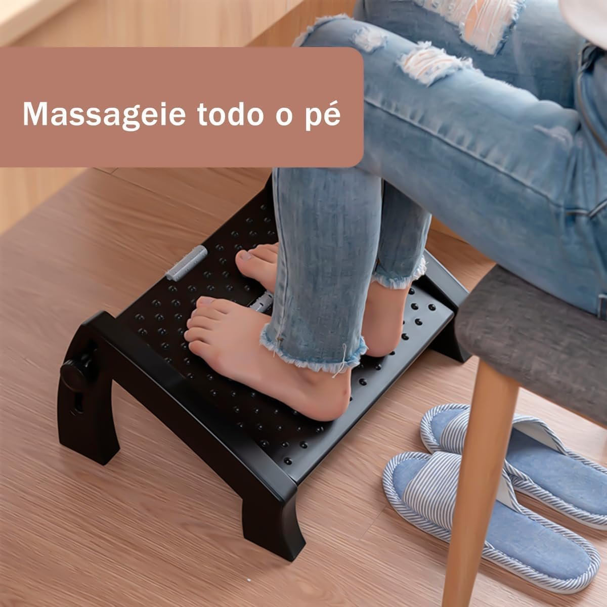 Banquinho Apoio Para Os Pés Embaixo Da Mesa Com Altura Ajustável Em 6 Posições Ergonômico Massageador com Rodinhas