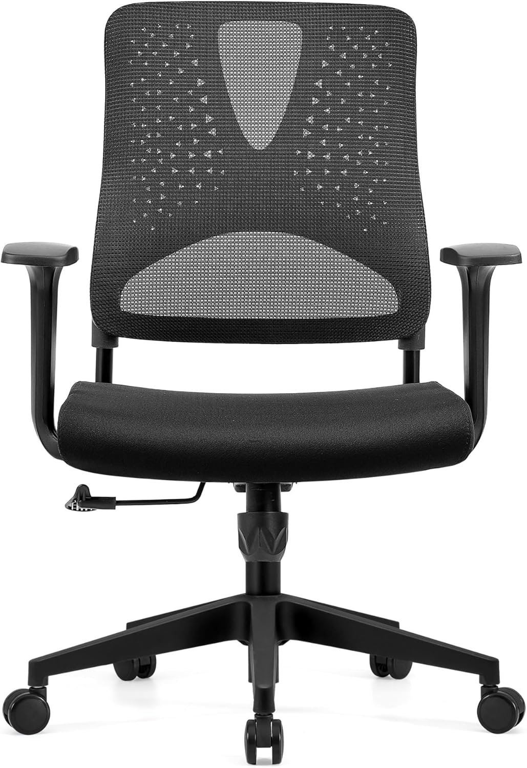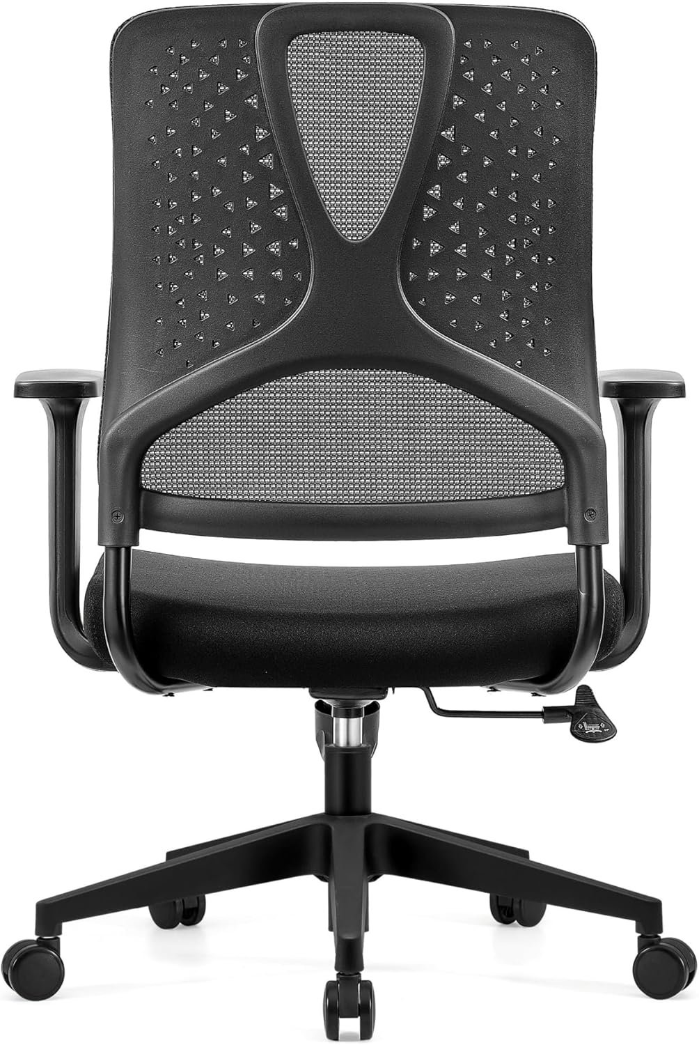 Cadeira de escritório de malha ergonômica com braços ajustáveis, rotação de 360°, design no meio das costas, preta ou turquesa (preto)