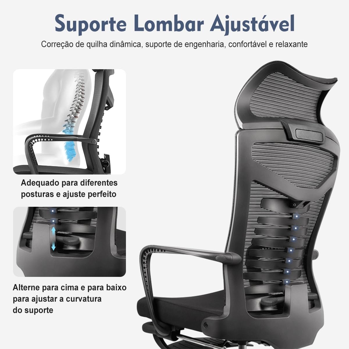 Cadeira de escritório ergonômica apoio de pés retrátil Suporte lombar ajustável