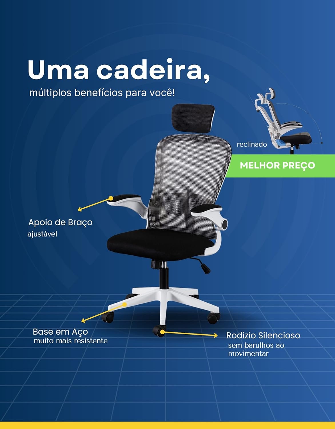 - Ergonomia: Ótimo suporte lombar e encosto em tela mesh.