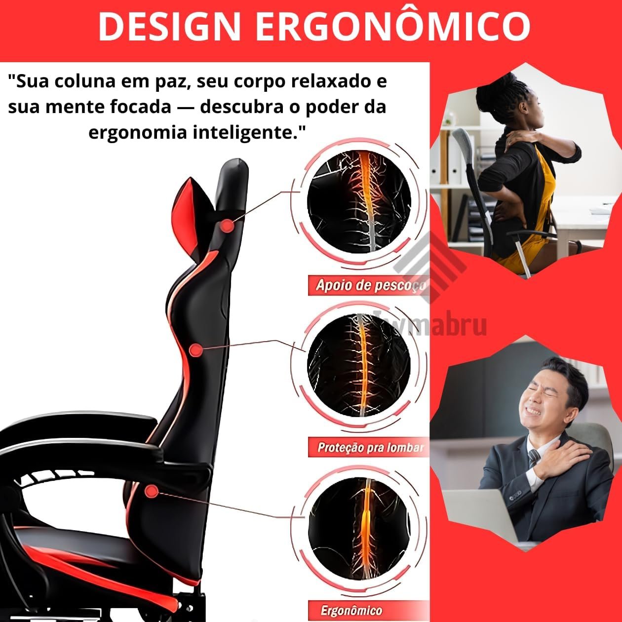 - Conforto e ergonomia (suporte lombar e pescoço ajustáveis)