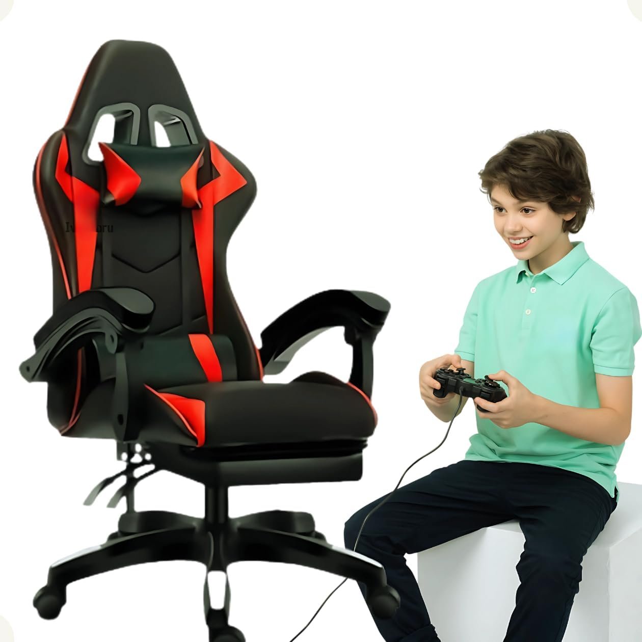 Cadeira Gamer Confortável Ergonômica Escritório, Couro Sintético,Giratória, Estilo Racing, Design moderno Suporte Lombar e Pescoço, Apoio para os Pés, Python Fly