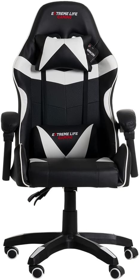 Cadeira Gamer Drakon c/Apoio Dorsal e Cervical – Encosto Reclinável – Apoio de Braços Articulado – Preto/Branco – CH31BKWH ELG