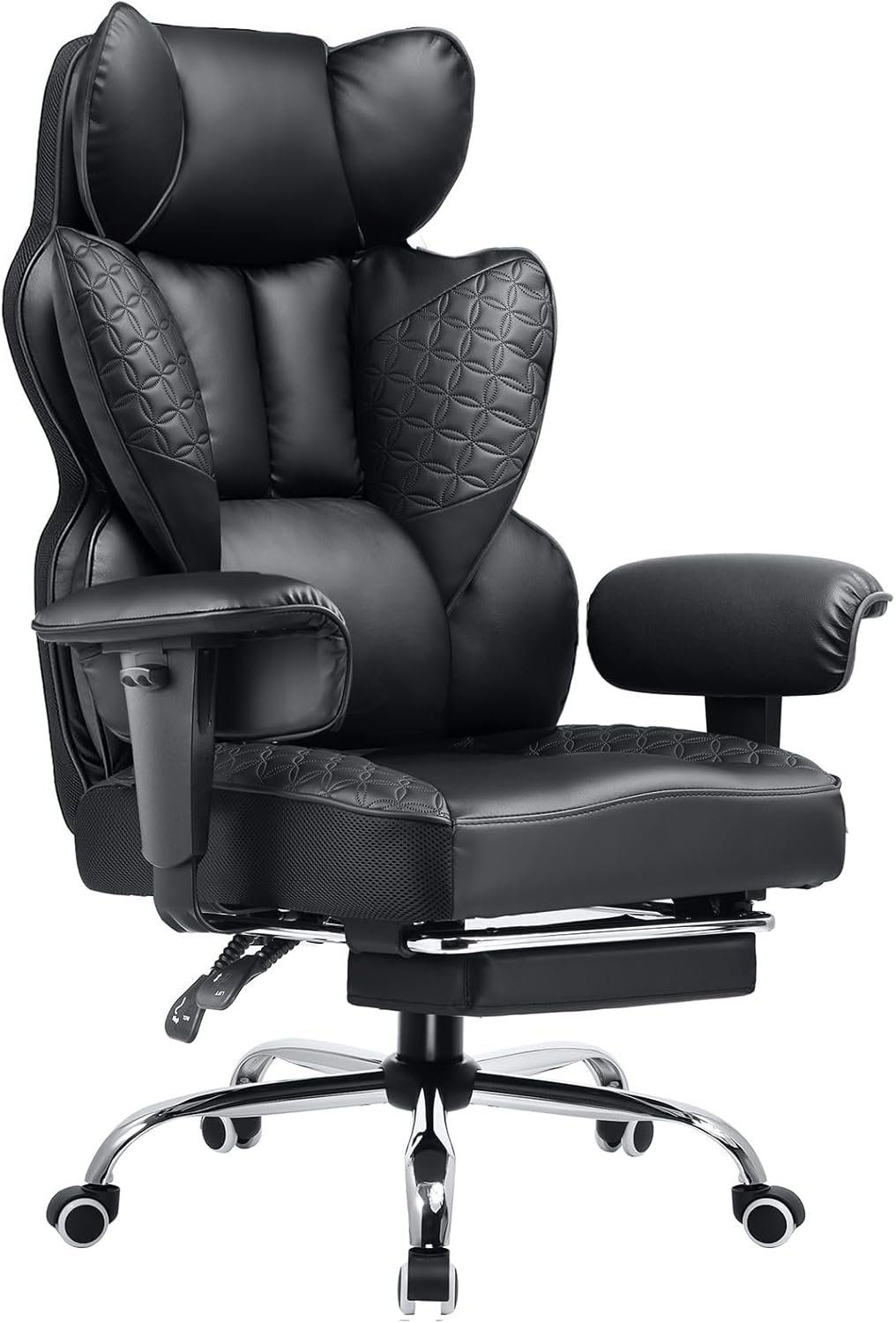 GTPLAYER Cadeira de escritório para jogos grande e alta 181 kg, cadeira de mesa ergonômica resistente com apoio para os pés, suporte lombar de mola, almofada 3D para alívio da dor nas costas, couro PU