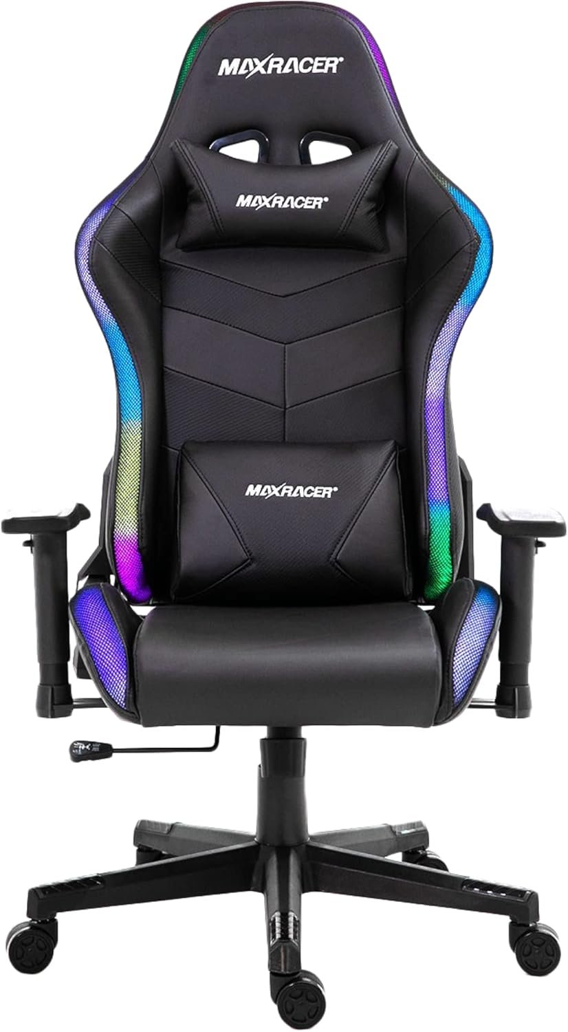 A MAX RACER Cadeira Gamer Khroma – Poltronas Gamer de Aço, Cadeira Ergonômica – Assento Luz LED, Suporta 150kg, Braço 2D, Tecido Sintético PVC, Inclinação 135°, Almofada Cervical e Lombar – RGB – Preta é uma boa opção para quem busca uma cadeira gamer com visual moderno, boa ergonomia e preço competitivo. Apesar de ter alguns pontos a melhorar, como o tecido PVC e o ajuste dos braços, ela entrega um bom conforto e suporte para longas horas de uso. Se você está procurando uma cadeira para melhorar sua experiência de jogo ou trabalho, e se o design RGB te atrai, essa pode ser uma excelente escolha. Pense no seu orçamento, nas suas necessidades e compare com outras opções antes de tomar a decisão final, mas, na minha opinião, ela oferece um bom custo-benefício.