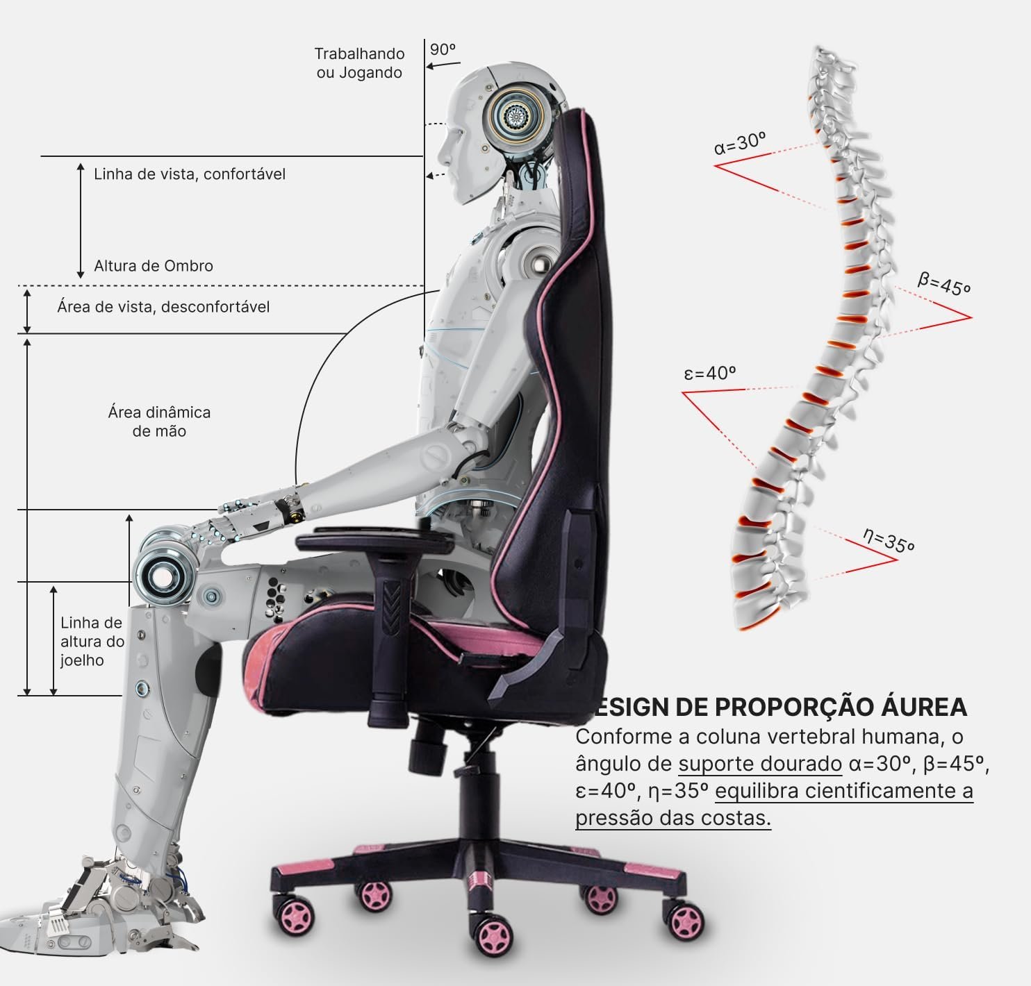 • Ergonomia: Excelente suporte para a coluna e o pescoço.