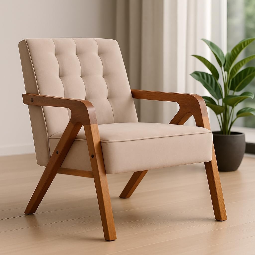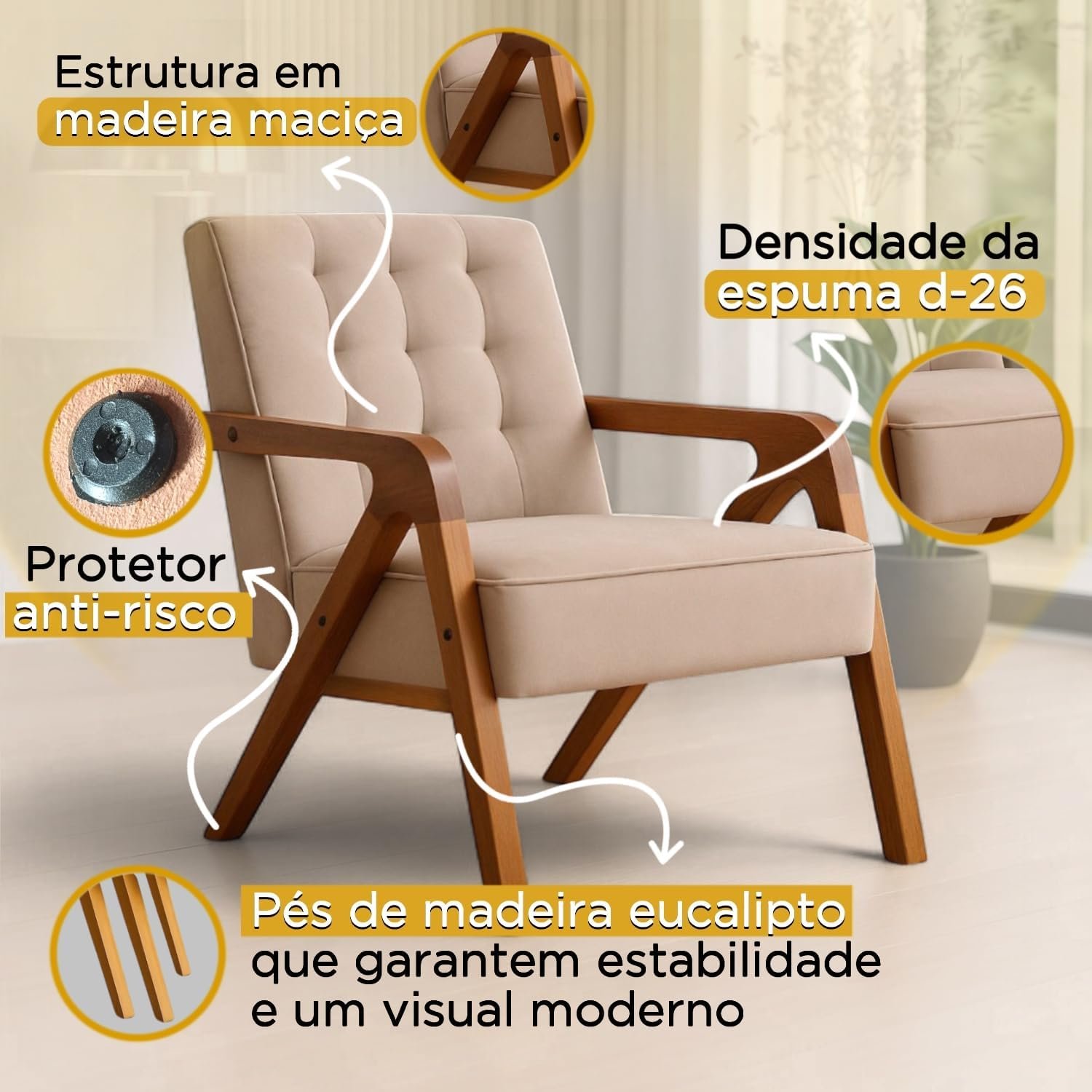 Primeiras Impressões da Poltrona Cadeira Decorativa Estofada Confortável Bege