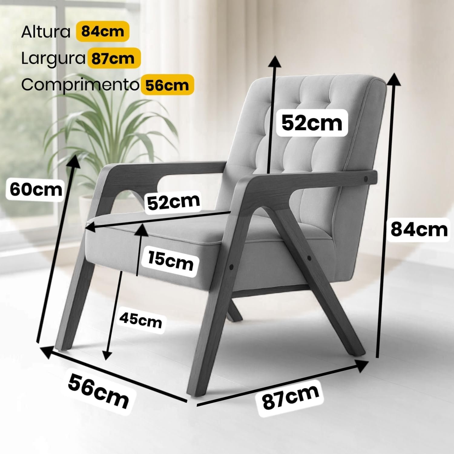A versatilidade da poltrona bege é um grande diferencial. Além de ficar linda na sala de estar, ela também se encaixa perfeitamente em um escritório, criando um cantinho de leitura aconchegante. Já imaginei ela na recepção de um consultório, transmitindo uma sensação de bem-estar e tranquilidade para os pacientes. No quarto, ela pode servir como um apoio para se vestir ou simplesmente para relaxar antes de dormir. Acredito que a cor neutra e o design clean a tornam uma peça curinga para qualquer ambiente.